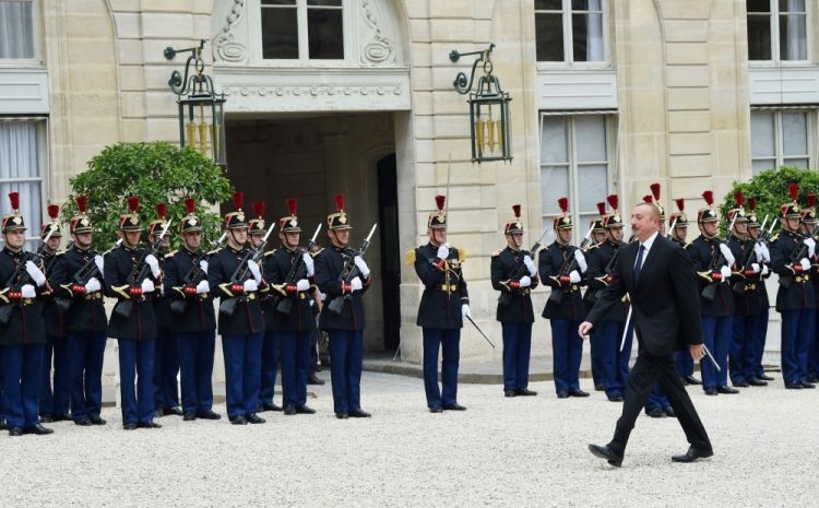 Parisdə, Yelisey Sarayında Azərbaycan prezidenti İlham Əliyevin Fransa prezidenti Emmanuel Makronla görüşü olub.