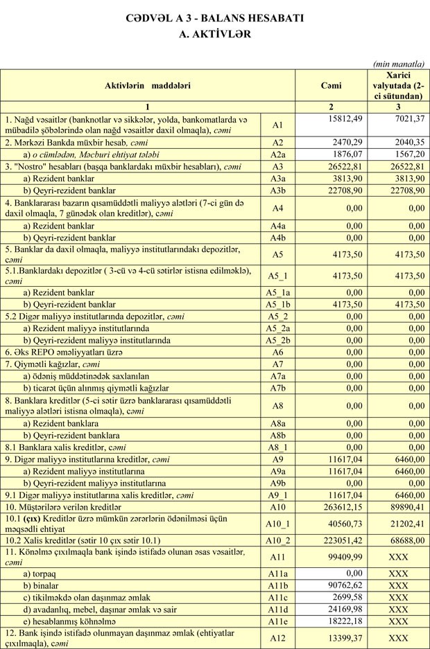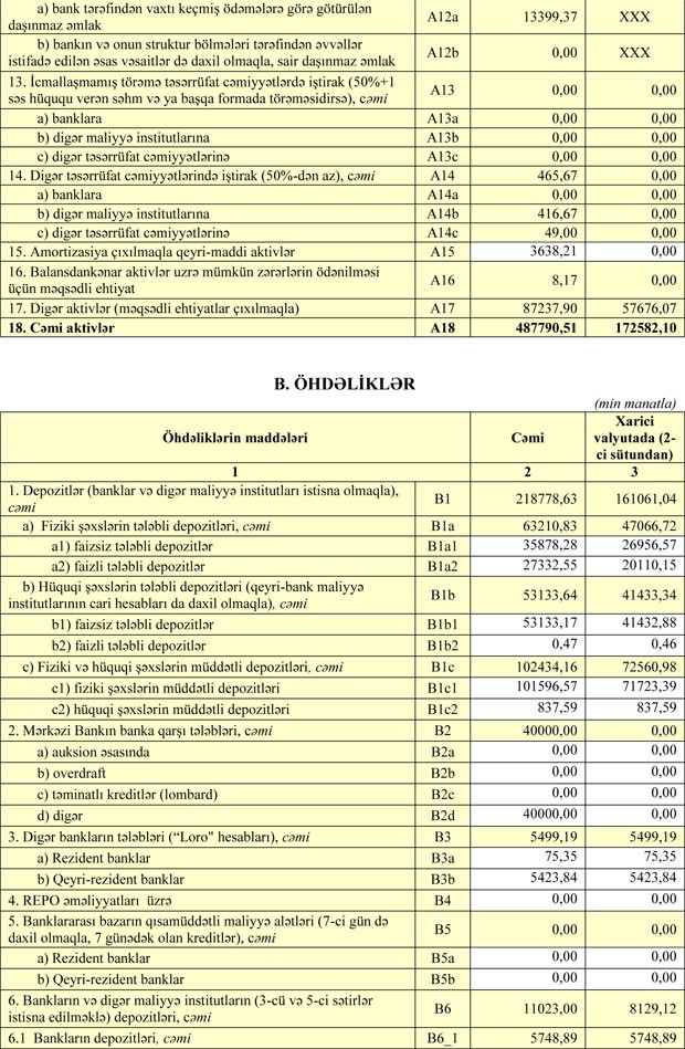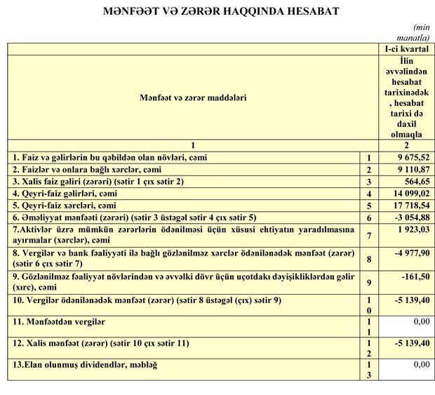 Zərər ilə əlaqədar olaraq Bankın cəmi kapitalı 47 milyon 174 min manatdan 43 milyon 195 min manatab düşüb.