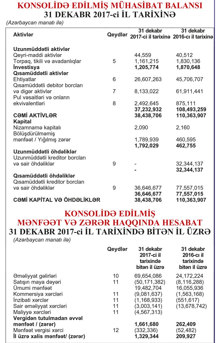 Ötən il QSC-nin aktivləri kəskin azalıb. 2016-cı ilin sonunda 110 milyon 364 min manat olmuş cəmi aktivlər 2017-ci ilin sonunda 38 milyon 438 min manata düşüb.