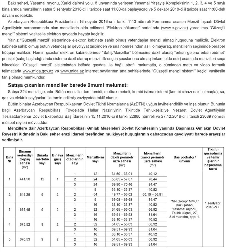 Yalnız “Güzəştli mənzil” sistemində elektron kabinetə sahib olmuş vətəndaşlar mənzil almaq hüququna malikdirlər. Ətraflı: buradan oxu