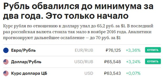 ABŞ tərəfindən Rusiyaya tətbiq ediləcəyi gözlənilən sanksiya layihəsinə dir detalların Rusiya mətbuatında yer almasının ardından, birjada Rusiya rublu dollar qarşısında 3,2 % ucuzlaşaraq 65,55 səviyyəsinə, avro qarşısında da 3,4 faiz düşərək 76,13 səviyyəsinə geriləyib. Banklarda Dollar 66 rubldan da baha satılır.