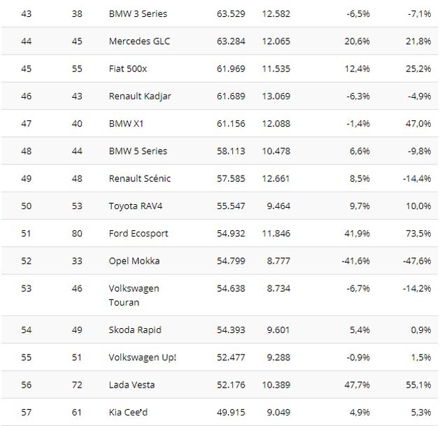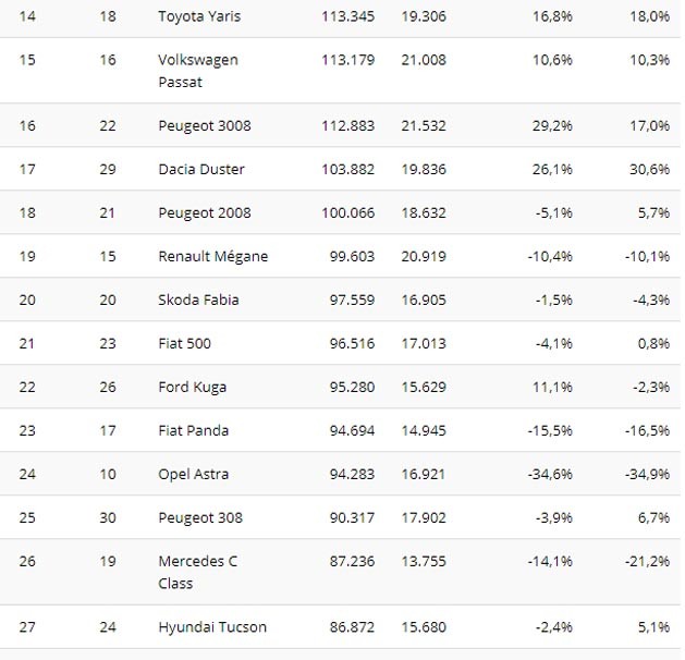 "Marja" Azərbaycan Avtomobil İstehsalçıları Assosiasiyasının (ACEA) məlumatına istinadən xəbər verir ki, ilk beşliyə Volkswagen-nin 3 modeli daxildir.