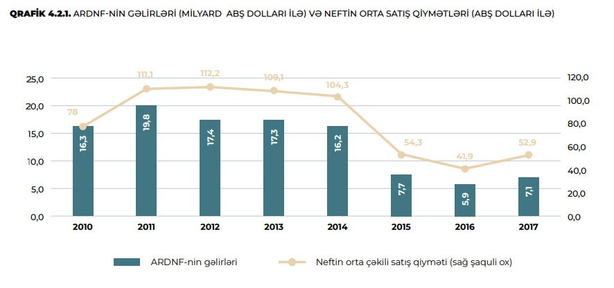 2001-2017-ci illər ərzində Dövlət Neft Fondunun (ARDNF) daxilolmaları 137,87 milyard ABŞ dolları səviyyəsində olmuşdur.