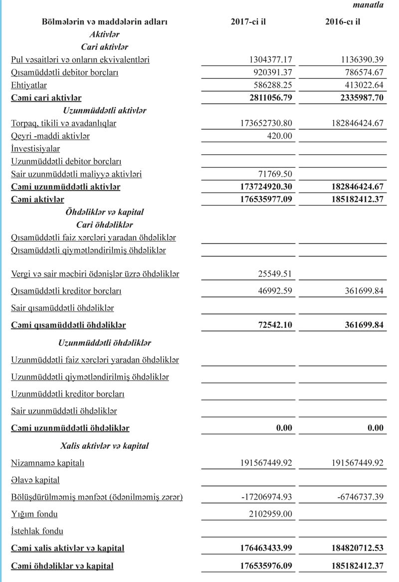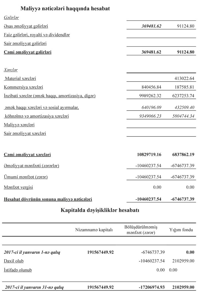 MMC ötən ilin sonunda 191 milyon 567 min 449 manat nizamnamə kapitalına malik olub. Şirkətin yığılmış zərəri 17 milyon 207 min manata çatdığından cəmi kapital və öhdəliklər 176 milyon 536 min manata düşüb. Qısası, zərər sərmayənin bir hissəsini silib.