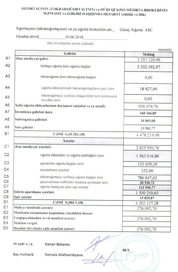 Qeyd edək ki, “Günay Sığorta” ASC 2016-cı ili 104 min 167 manat, 2017-ci ili 95 min 955 manat xalis mənfəətlə başa vurmuşdu.