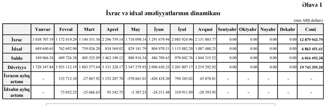 Cari ilin 8 ayı ərzində isə cəmi idxalımız 6 milyard 863 milyon dollar olub.