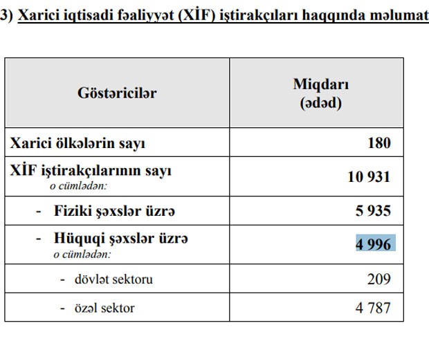 Fiziki şəxslərin sayı 5935-dən 9756-ya, hüquqi şəxslərin sayı isə 4996-dan 5917-yə qalxıb. Son bir ildə 921 şirkət xarici ticarətlə məşğul olmağa başlayıb.