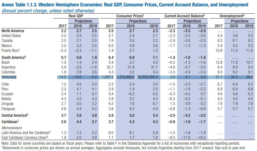 "Marja" xəbər verir ki, BVF-nin "Dünyanln İqtisadi Görünüşü" hesabatında Venesuela iqtisadiyyatına dair proqnozlar da yer alıb.