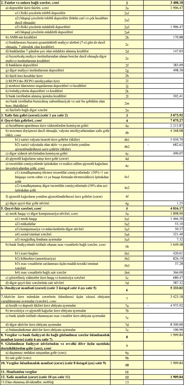 Bankın kreditlər üzrə faiz gəlirləri ilə bərabər digər banklarda yerləşdirilmiş depozitlərdən gəlirləri də artıb.