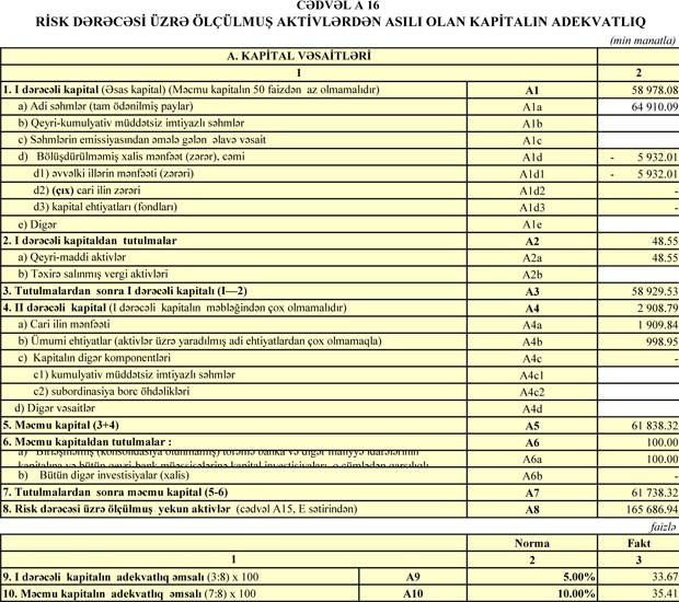 Bankın müştərilərə verdiyi kreditlər ötən ilin Sentyabr ayının sonundakı 131 milyon 387 min manatdan 135 milyon 419 min manata çatıb.