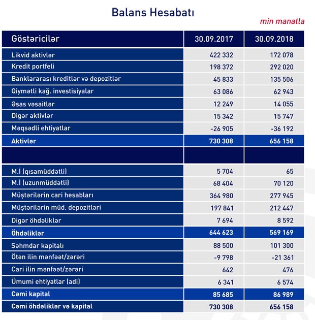 Bankın cəmi aktivləri isə 656 milyon 158 min manatdan 730 milyon 308 min manata qalxıb.