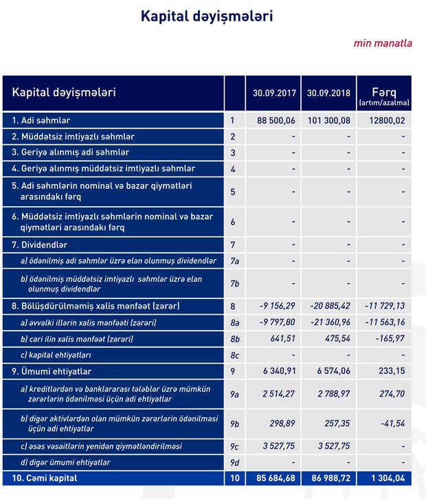 30 Sentyabr 2018-ci il tarixində “Rabitəbank” 100 milyon 170 min manat məcmu kapitala malik olub.