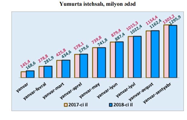 Ölkə üzrə cəmi yumurta istehsalı isə 1 milyard 303 milyon ədəddən 1 milyard 296 milyon ədədə düşüb.