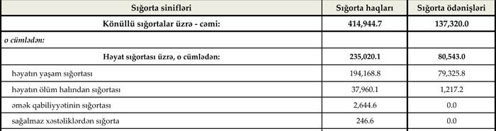 Cari ilin 9 ayı ərzində həyatın yaşam sığortası üzrə sığorta ödənişləri isə 79 milyon 325 min manat təşkil edib. Ötən ilin eyni dövründə bu növ üzrə sığorta ödənişləri 87 milyon 197 min manat təşkil etmişdi.
