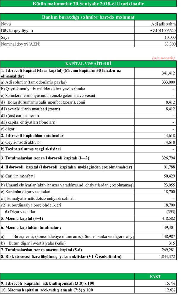 30 Sentyabr 2018-ci il tarixində "PAŞA Bank" 269 milyon 281 min manat məcmu kapitala malik olub.
