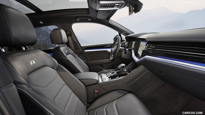 Salona daxil olduqda isə, buradan ayrılmaq istəməyəcəksiniz. 2 ədəd böyük ekran - 12 düyümlük (öz seqmentində maksimal ölçü) alətlər paneli və 15 düyümlük multimediya ekranı. Sürücü və sərnişinlərin rahatlığı və komfortu üçün bütün incəliklər düşünülüb, hətta öz Touareg avtomobilinizin interyerini zövqünüzə və ya geyiminizə uyğun rəngdə ışıqlandıra bilərsiniz. Yüksək alman keyfiyyəti özünü ən kiçik detallarda belə göstərir.