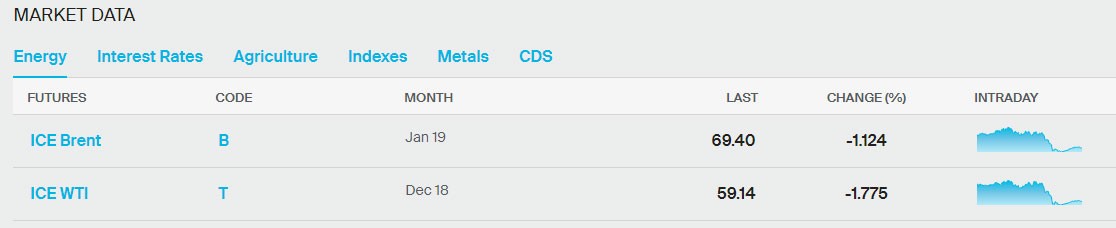 Bu gün Brent markalı neft təxminən 1,1% də ucuzlaşaraq 69,40 dolları, ABŞ xam neftinin qiyməti isə 1,8% düşərək 59,14 dolları görüb (Saat 08:50-yə olan məlumat).