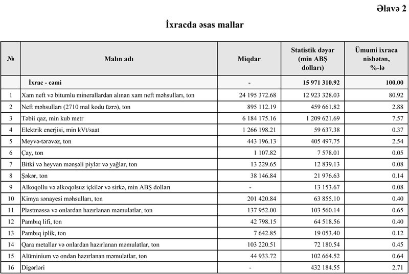 Azərbaycanın ən çox ixrac və idxal etdiyi mallar