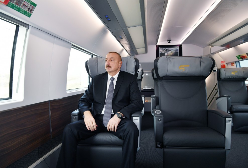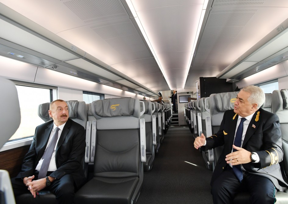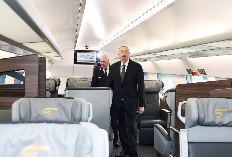 Sonra Prezident İlham Əliyev Sumqayıt-Bakı marşrutu üzrə hərəkət edən sərnişin qatarı ilə Bakıya gəlib.