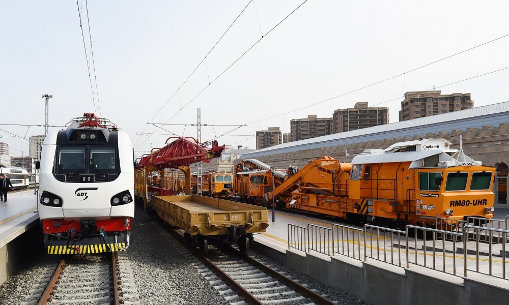 Bakı dəmir yolu vağzalına gələn Prezident İlham Əliyev burada 2016-cı ildən bəri alınmış yeni sərnişin qatarları, lokomotivlər və müxtəlif dəmir yolu texnikalarına baxdı. “EVOLUTİON” seriyalı teplovoz Qazaxıstan istehsalıdır və saatda 120 kilometr sürətlə hərəkət edir. Sabit cərəyanla işləyən lokomotiv isə Gürcüstanda istehsal olunub və sürəti saatda 100 kilometrdir. Dövlətimizin başçısına “Alstom Transport” ikisistemli sərnişin lokomotivi də təqdim olundu. Bu lokomotiv sabit, həmçinin dəyişən cərəyanla işləyir və saatda 160 kilometr sürətlə hərəkət edir. Bütövlükdə Avstriya, Rusiya, Çexiya və digər ölkələrdən alınan yeni lokomotiv və avadanlıqlar təmir-tikinti və istismar proseslərinin tamamilə avtomatlaşdırılmasına və mexanikləşdirilməsinə imkan yaratmaqla dəmir yollarında daşımaların təhlükəsizliyini gücləndirəcək, xüsusilə də sərnişinlərə xidməti daha yüksək səviyyəyə qaldıracaq.