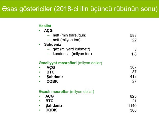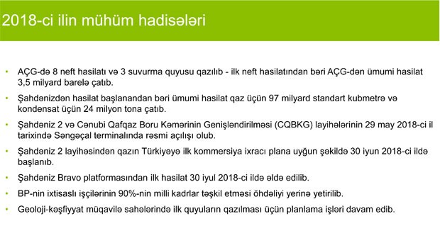 “BP”nin Azərbaycandakı ofisi 2018-ci ilin 3-cü rübünün nəticələrini açıqlayıb.