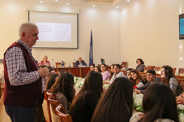 N. Vəliyev həmçinin tələbələrlə öz təcrübəsi ilə bölüşüb və onlara bir sıra faydalı məsləhət verib.
