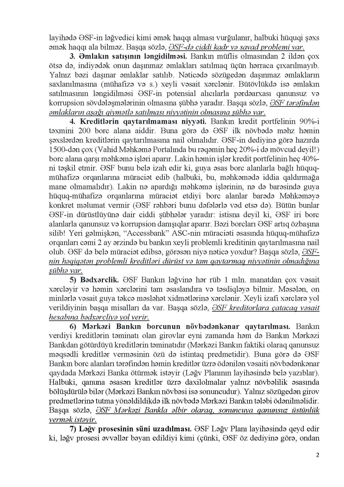 4) Kreditlərin qaytarılmaması niyyəti;