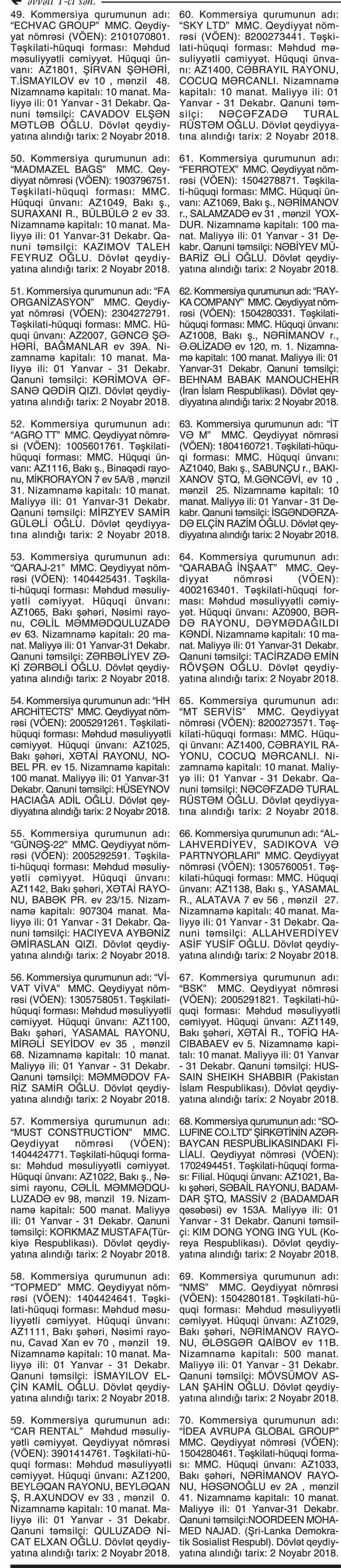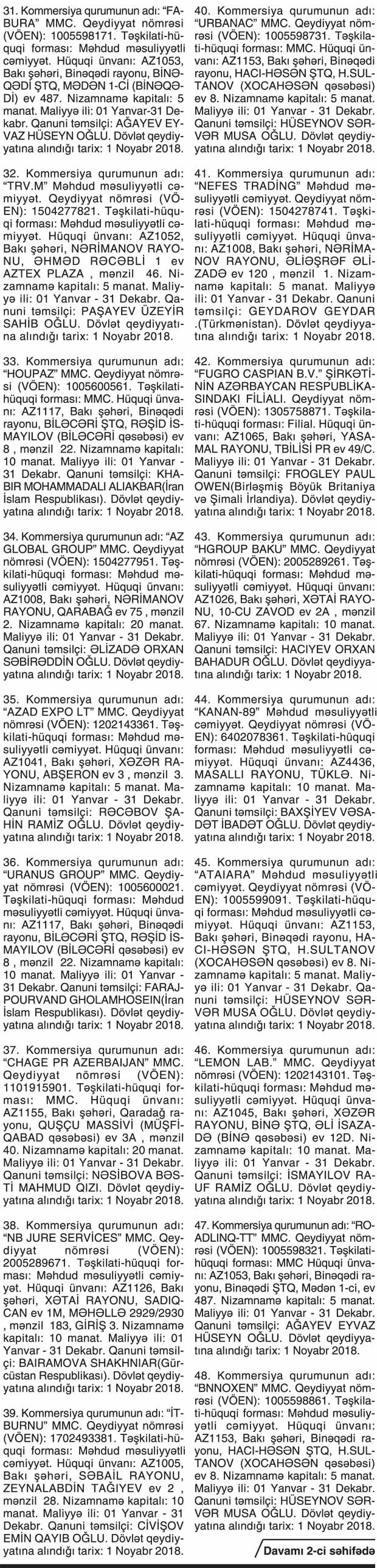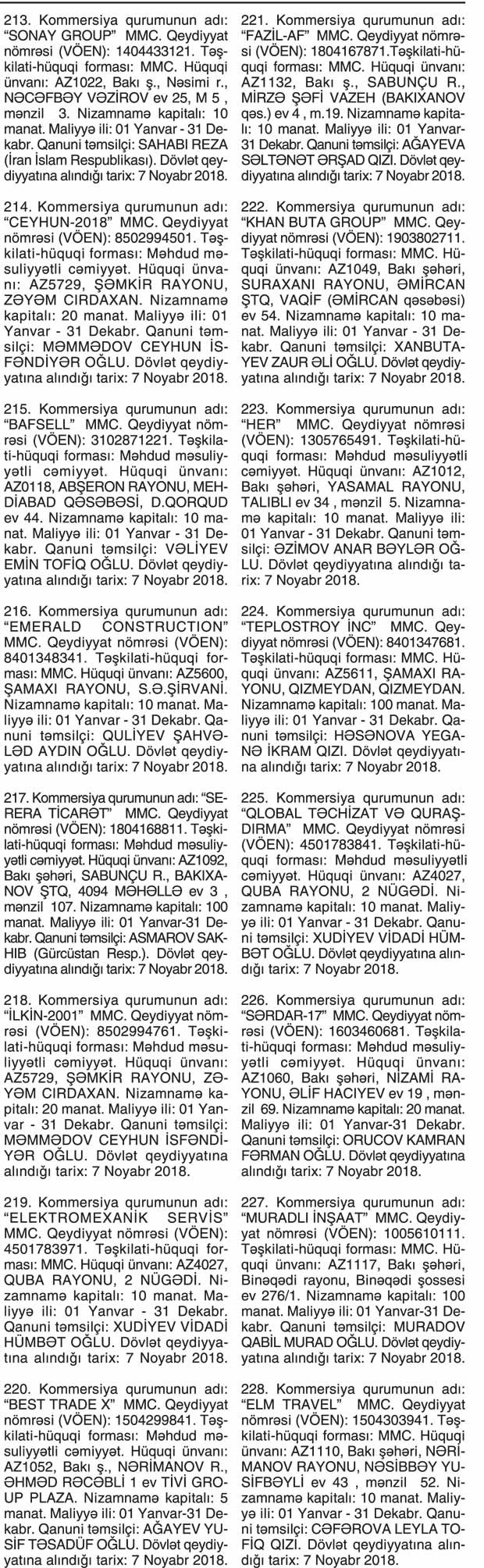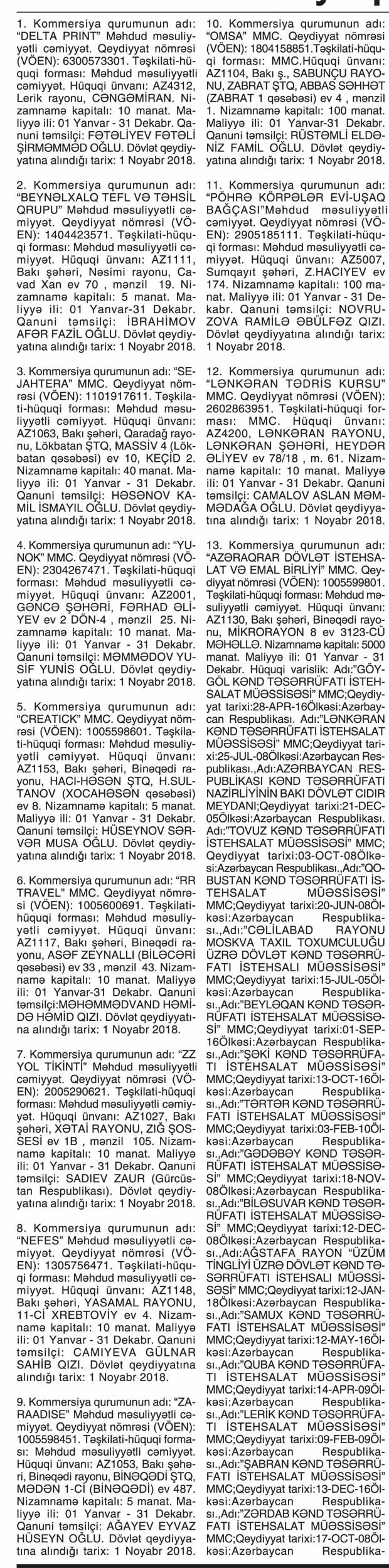 "Marja" yeni dövlət qeydiyyatına alınmış şirkətləri təqdim edir.