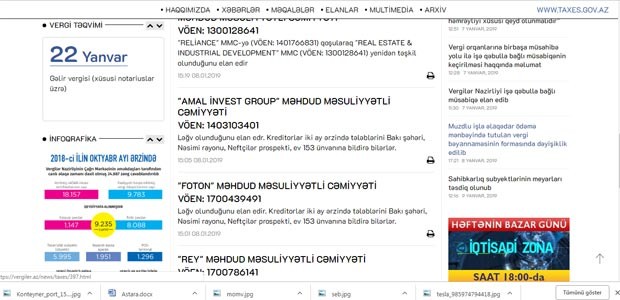 Qeyd edək ki, bundan əvvəl "Vergilər" qəzetində dərc edilmiş elanda "AMAL İNVEST GROUP" MMC-nin ləğv edildiyi yazılmışdı (fotolar əlavədə).