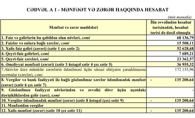 Zərərin yaranmasının səbəbi Bankın ötən il aktivlər üzrə mümkün zərərlərin ödənilməsi üçün xüsusi ehtiyatın yaradılmasına 172 milyon 156 min manat ayırmasıdır. Ehtiyatlar ehtimal olunan depozit və kredit itkiləri üçün yaradılır.