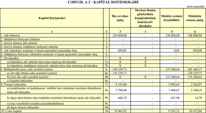 İllik müqayisədə Bankda depozitlər cüzi azalaraq 229 milyon 225 min manatdan 228 milyon 666 min manata düşüb.