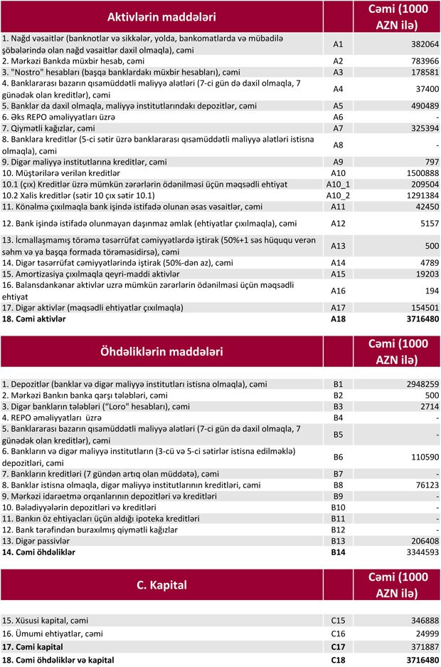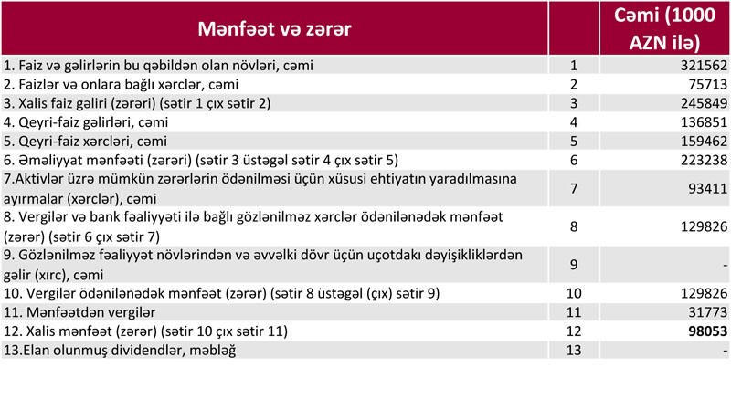 Azərbaycanın ən böyük banklarından biri 100 milyon manata yaxın xalis mənfəət açıqladı