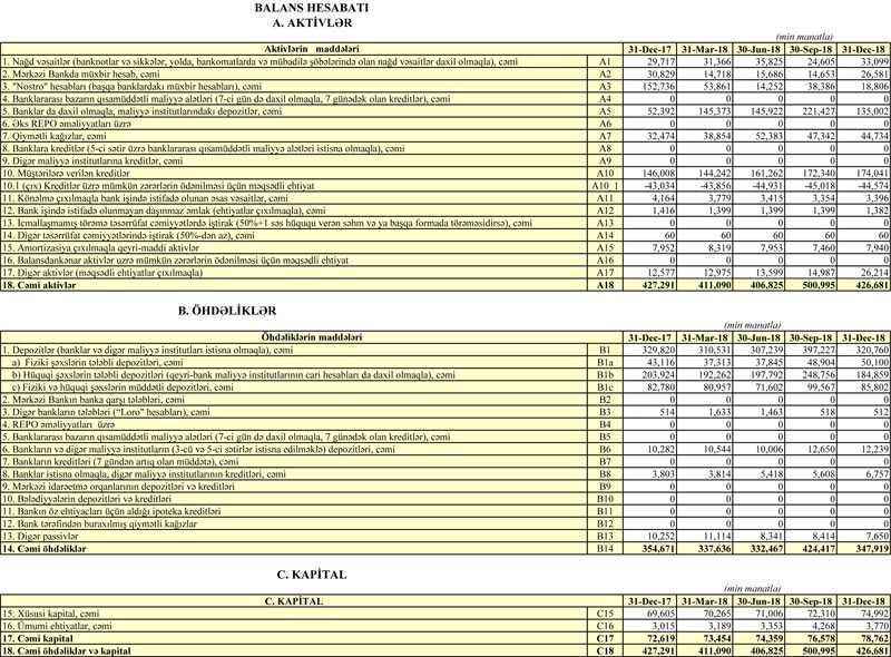 İllik müqayisədə Bankın məcmu kapitalı 64 milyon 76 min manatdan 70 milyon 227 min manata qalxıb.