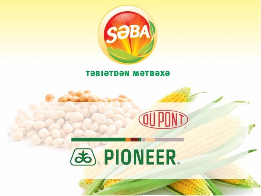 Fotoda “DoPont” və “Pioner” şirkətlərinin loqoları əks olunub. “Səba” bildirir ki, törəmə şirkəti “Qarabağ Taxıl” bu şirkətlərin toxumlarını fermerlərə təklif edir.