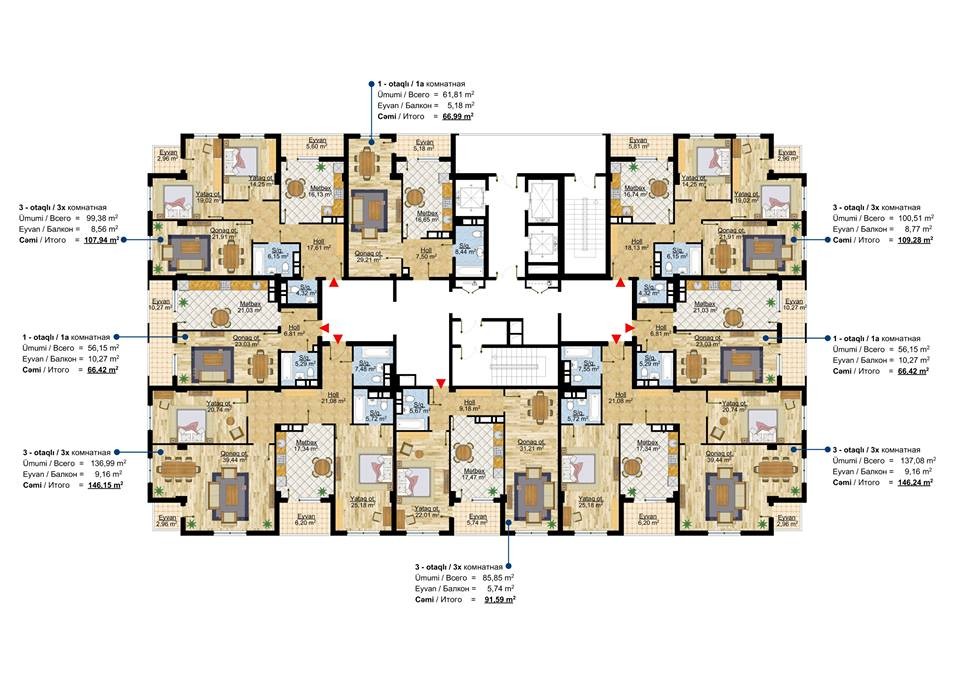 Şirkətin yaydığı məlumata görə, binalar tam dəniz panoramalıdır. Binalardan Bakı bulvarına möhtəşəm panorama olduğu da qeyd edilir.