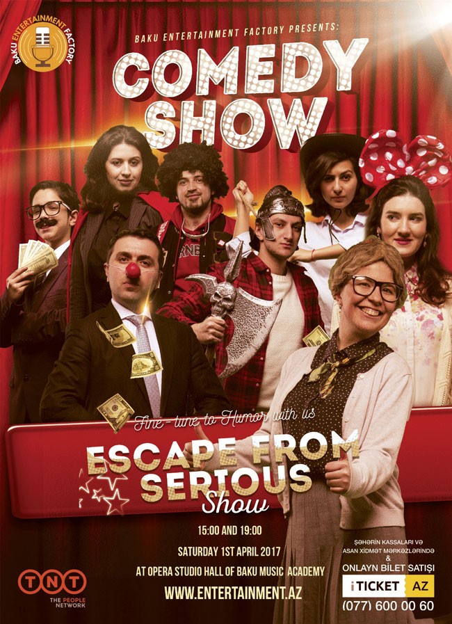 2017-cı ildə təsis edilən “Baku Entertainment Factory” (BEF) şirkəti Azərbaycan bazarında ingilis dilli əyləncə proqramlarının əsas təminatçısı olmaqla uğurla inkişaf etməkdədir. Bakının mərkəzləşdirilmiş bilet kassalarında satışa çıxarılmaqla təqdim edilən Azərbaycanda ilk ingilis dilli Comedy Show layihəsinin müəllifi Baku Entertainment Factory-dir. Qeyd edək ki, qeyd edilən “BEF Comedy Show: Escape from Serious” adlı bu layihə ölkəmizdə maraqla qarşılanmışdır və 1 Aprel tarixində Şövkət Ələkbərova adına Opera Studiyasının Konsert Salonunda keçiriləcək proqramın biletləri iticket.az saytında, şəhərimizin bütün bilet kassaları və ASAN Xidmət mərkəzlərində satışa çıxarılmışdır.