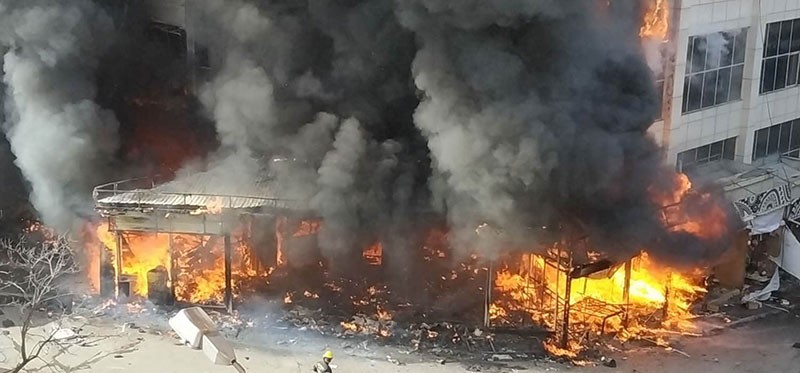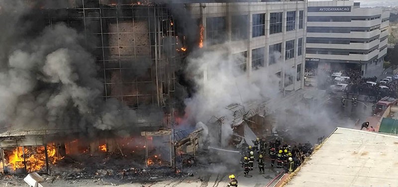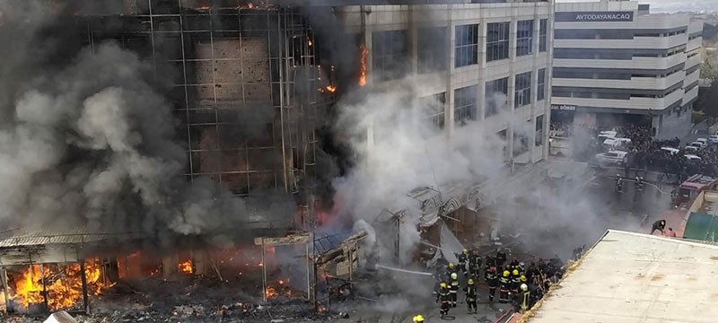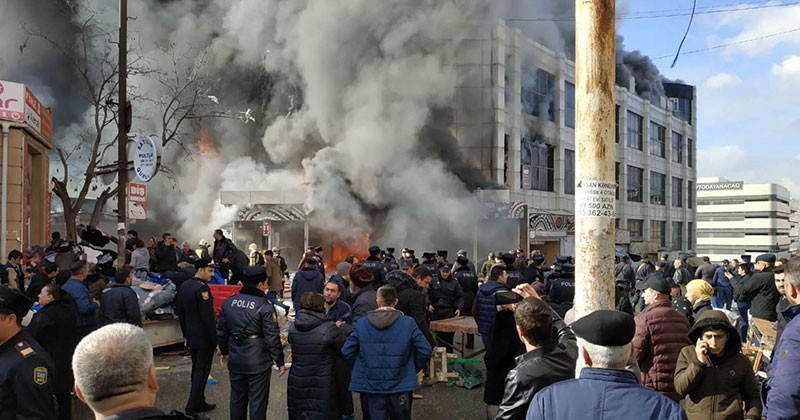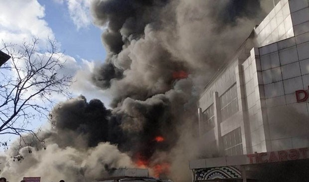 Yanğın nəticəsində ticarət mərkəzinin binası tam yararsız hala düşüb.