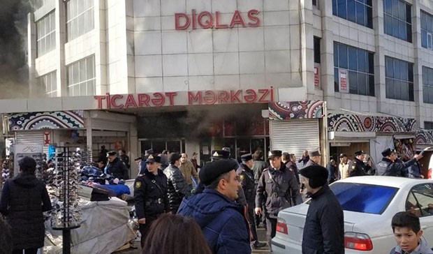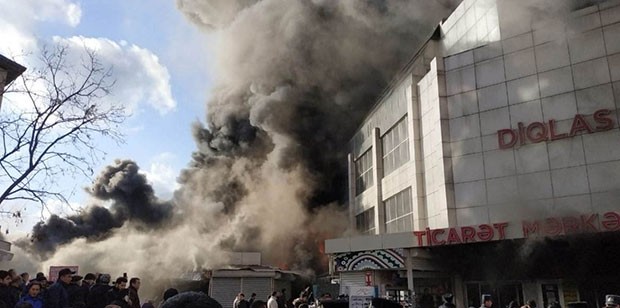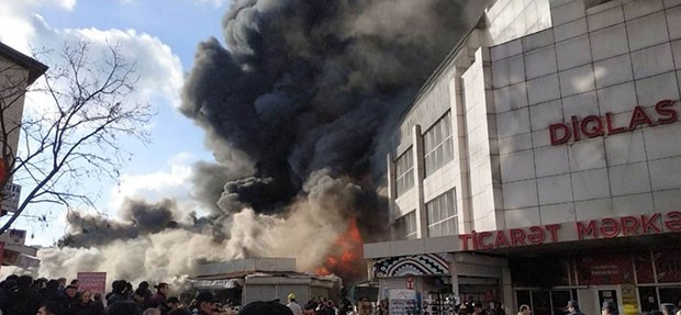 Yanğının "Diqlas" ticarət mərkəzində baş verdiyi bildirilir. Yanğnsöndürənlər yanğını söndürməyə çalışırlar.