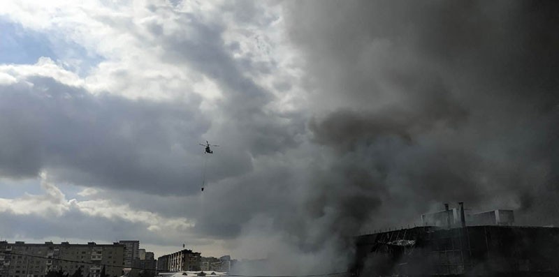 Bakının 8-ci kilometr adlanan ərazisindəki “Diqlas” Ticarət Mərkəzində və digər təyinatlı obyektlərin yerləşdiyi ərazidə davam edən yanğının söndürülməsinə Fövqəladə Hallar Nazirliyinin Aviasiya dəstəsinin helikopteri cəlb olunub.