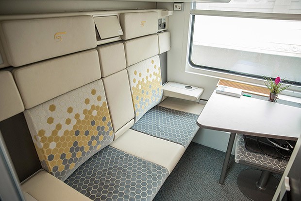 "Marja"a xəbər verir ki, Bakı-Tbilisi-Qars dəmir yolu xəttində hərəkət edəcək qatarda doqquz sərnişin vaqonu, bir restoran var. Qatar İsveçrədən Türkiyəyə, oradan Gürcüstana gətirilib. Qatar Axalkalakidə quraşdırılmış xüsusi qurğuda 1520 mm standartlı izdən və 1435 mm mm standartlı izə test rejimində sınaqdan keçiriləndən sonra Bakıya gətirilib.