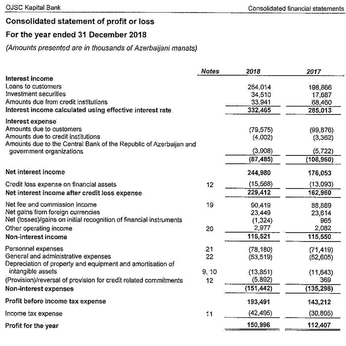 "Marja" audit olunmuş hesabata istinadən xəbər verir ki, "Kapital Bank" ASC 2018-ci ildə 150 milyon 996 min manat xalis mənfəət əldə edib. Bankın yerli standartlar əsasında açıqladığı hesabatında ötən il xalis mənfəətin 98 milyon 53 min manat olduğu açıqlamışdı. Beləliklə, Bankın autit olunmuş hesabatına görə, xalis mənfəət 52 milyon 943 min manat çoxdur.