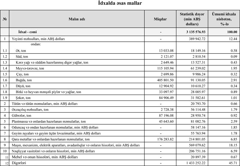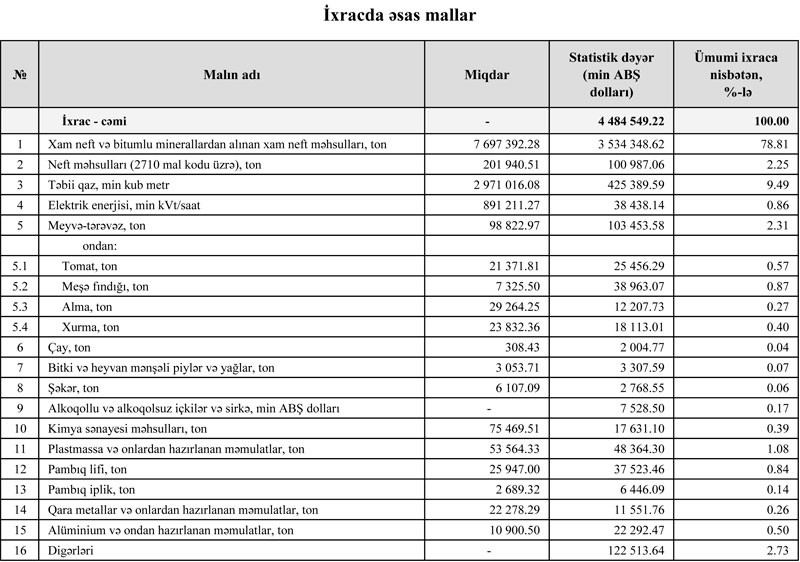 Azərbaycanın ən çox ixrac və idxal etdiyi mallar