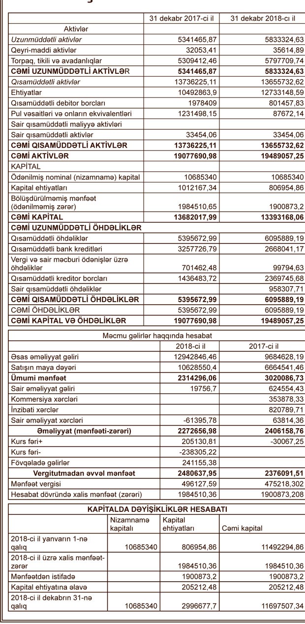 2017-ci illə müqayisədə 2018-ci ildə satışın maya dəyəri isə 60% artaraq 10 milyon 629 min manat təşkil edib. 2017-ci ildə satışın maya dəyəri 6 milyon 664 min manat olmuşdur. Maya dəyərinin satış gəlirindən 2 dəfə sürətli artması mənfəətin kəskin artmasını əngəlləyib.