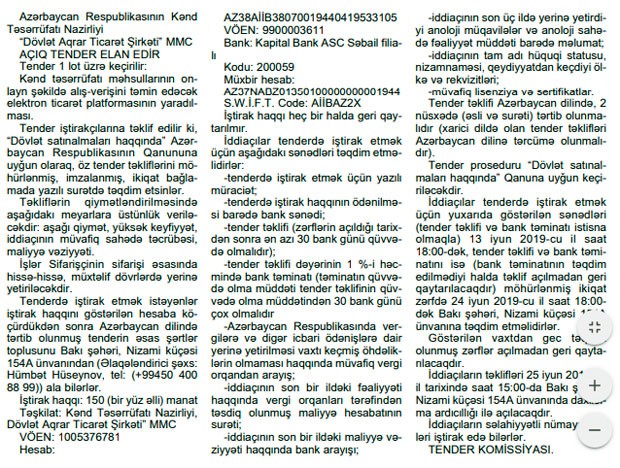 "Marja" xəbər verir ki, Şirkət platformanın hazırlanması üçün tender elan edib. İddiaçılar 13 İyun 2019-cu il tarixinədək tendertdə iştirak üçün müraciət edə bilərlər.
