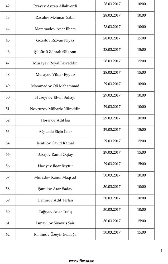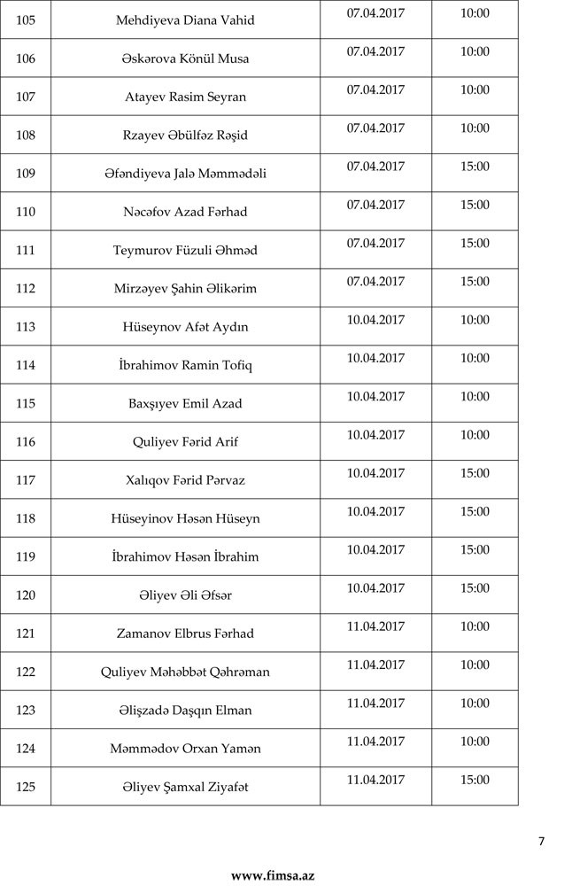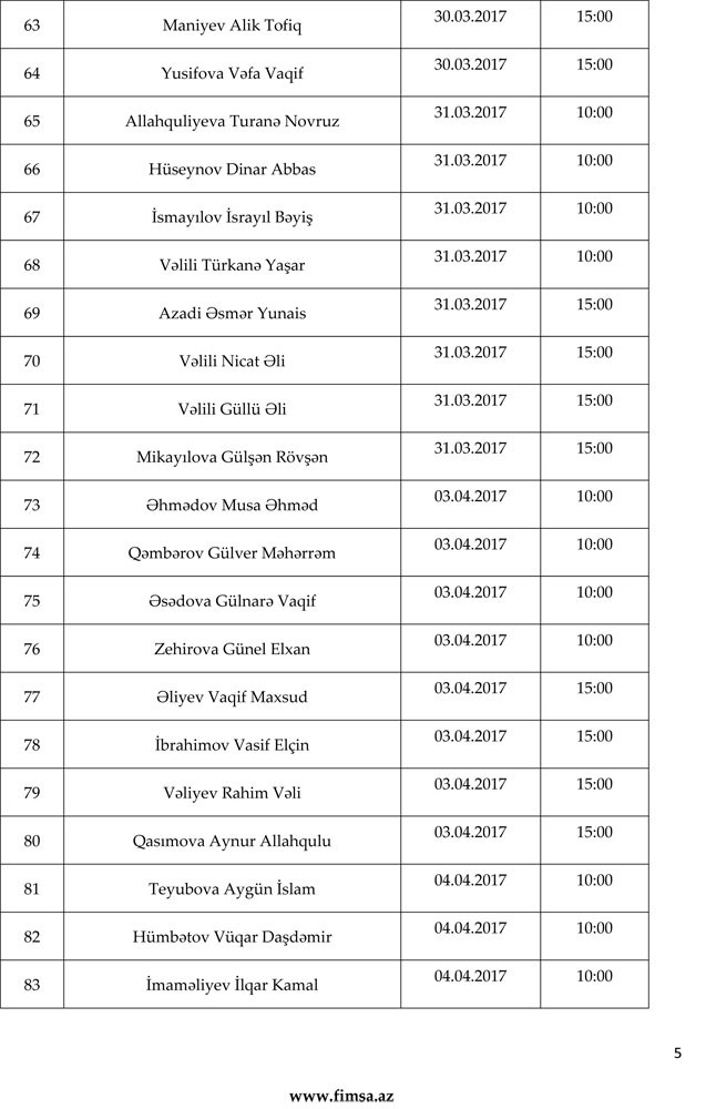 Namizədlər attestasiyanın tarixi və vaxtı barədə məlumatı aşağıdakı siyahıdan əldə edə bilərlər.