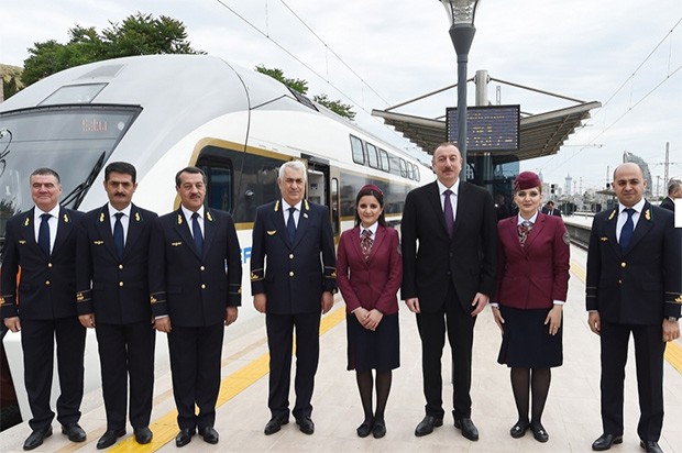 Sonra Prezident İlham Əliyev Bakı sərnişin - Sabunçu dəmir yolu xətti üzrə görülən işlərlə tanış olmaq üçün qatarla Bakı Dəmir Yolu Vağzalına yola düşüb.