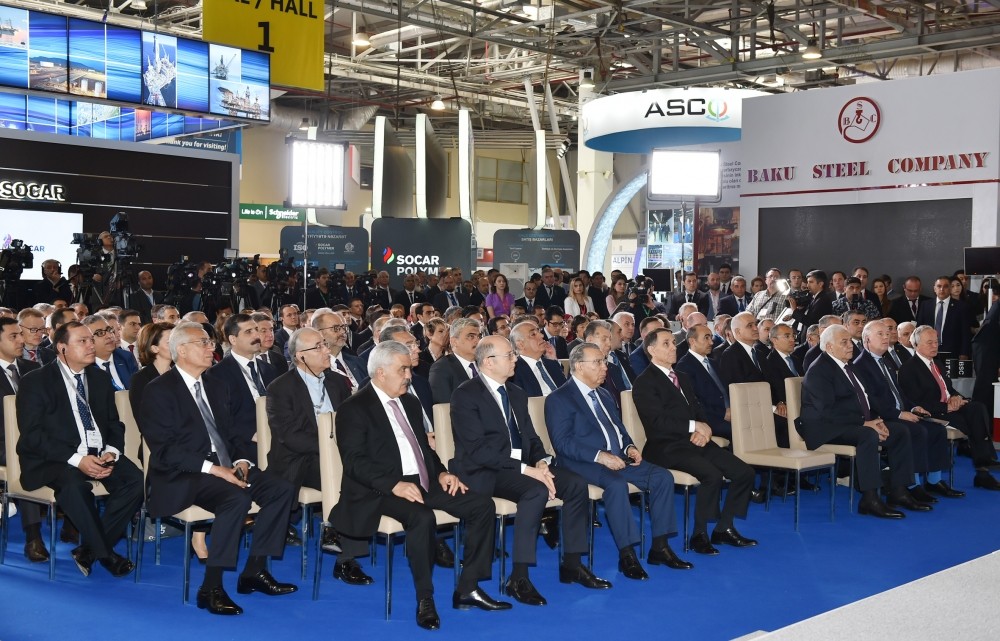 Mən birinci sərgini xüsusilə qeyd etmək istərdim. 1994-cü ildə keçirilmiş birinci sərgi Azərbaycanı dünyaya təqdim etdi, Azərbaycanın zəngin neft-qaz resursları haqqında dünyaya məlumat verdi. Çünki o vaxt Azərbaycan haqqında məlumat çox məhdud idi, bizim ölkəmiz gənc müstəqil dövlət idi, müstəqilliyinin ilk illərini yaşayırdı. Əlbəttə, dünyada, xüsusilə neft-qaz aləmində Azərbaycanın potensialı haqqında məlumat demək olar ki, yox idi. Sərginin keçirilməsi, Azərbaycana diqqətin cəlb edilməsi gələcəkdə Azərbaycanın neft-qaz sektorunun inkişafı üçün çox önəmli rol oynadı. Mən bunu nəzərə alaraq sərginin iştirakçılarına bir daha minnətdarlığımı bildirmək istəyirəm. Çünki onların bu qərarı, Bakıda bu sərginin keçirilməsi və ondan sonra uzun illər ərzində bizimlə əməkdaşlıq etmələri, əlbəttə ki, təqdirəlayiq bir haldır.