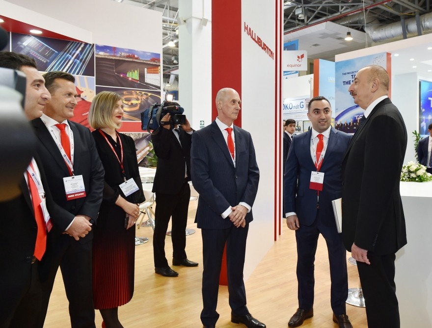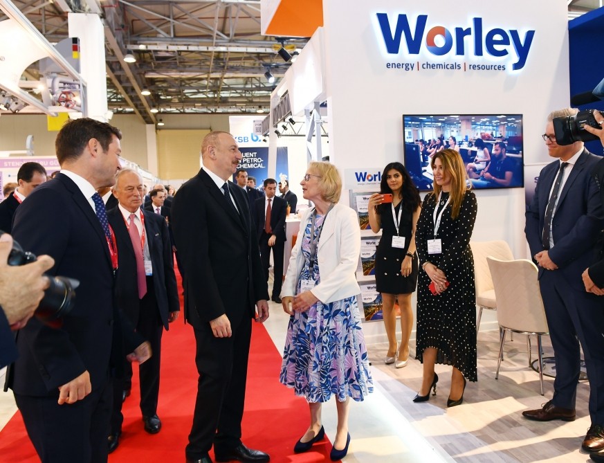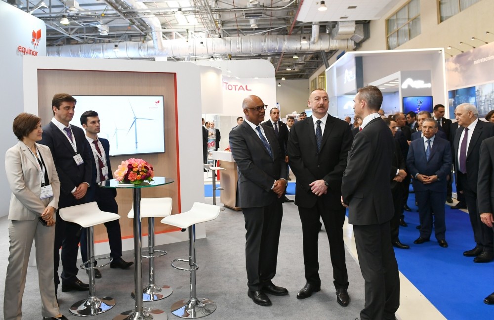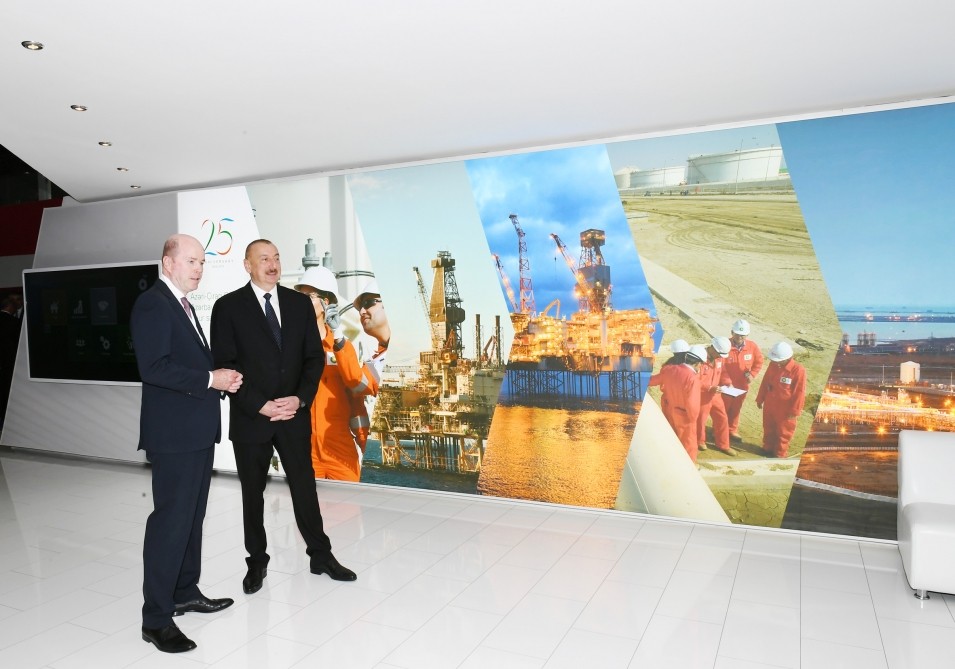 Prezident İlham Əliyev BP-Azərbaycanın stendində də oldu. Dövlətimizin başçısına burada AÇG-nin 25 illiyi ilə bağlı uğurlar və növbəti 25 illik plan barədə məlumat verildi. BP-Azərbaycan ölkənin və Cənubi Xəzər regionunun aparıcı əməliyyatçısı kimi fəaliyyət göstərir. Bu müddətdə BP təhlükəsiz və səmərəli əməliyyatlar həyata keçirərək ölkənin bir sıra mühüm neft-qaz layihələrini uğurla təhvil verib. Bu layihələrə “Azəri-Çıraq-Dərinsulu Günəşli” neft yatağı, “Şahdəniz” qaz və kondensat yatağı, üç ixrac boru kəməri, həmçinin dayazsulu “Abşeron” və “Şəfəq-Asiman” və D-230 geoloji-kəşfiyyat strukturları daxildir. İndiyədək BP tərəfdaşları ilə birgə Azərbaycanın neft-qaz layihələrinə 72 milyard dollardan artıq sərmayə qoyub. BP-nin Azərbaycanda 2900-a yaxın ixtisaslı işçisi var. Onların 90 faizi Azərbaycan vətəndaşlarıdır.