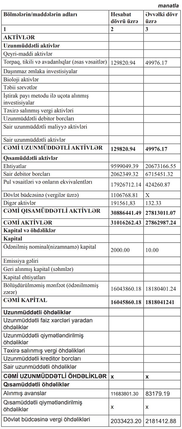 “AZCONSTRUCTİON” QSC-nin 2018-ci il dekabrın 31-nə mühasibat balansı