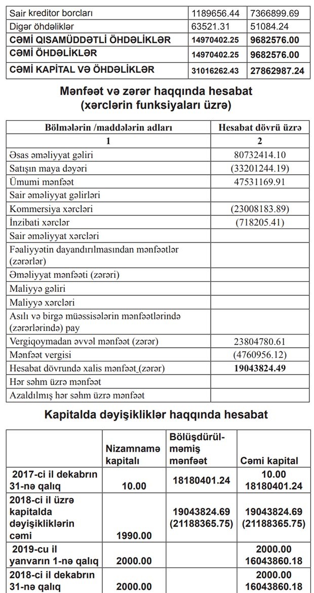Tenderləri udan şirkət 20 milyon manata yaxın xalis mənfəət açıqladı